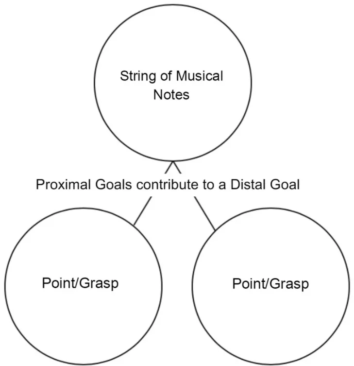 One possibility, left open by the aforementioned study, is that a joint action frame may lead participants to represent their partner’s actions in relation to a more distal joint action goal (i.e. a string of musical notes) instead of the more proximal goals that bring this about (i.e. grasping or pointing). In cases where the physical incongruence of the actions only obtains at the level of these more proximal goals, this might allow agents to bypass the representation of their partners’ physically incongruent movements altogether, reducing or eliminating visuomotor interference effects (See Fig. 1). The trouble is: there seem to be cases of joint action where it is not sufficient to bypass the representation of a partner’s proximal goal altogether and to merely consider the more distal outcome of the joint action goal. Rather, as illustrated by the basketball players mentioned above, it is often necessary to represent the more proximal goals of a partner’s action in order to select actions that would complement these with respect to the more distal joint action goal. Indeed, this can be true of even the most basic motor movements involved. Thus, basic questions remain. Specifically: can the introduction of a distal joint action goal reduce visuomotor interference effects in cases where incongruent proximal goals are contingently related to one another, and attention to these is required for the selection of appropriate motor movements? And, if so, how might this be achieved?