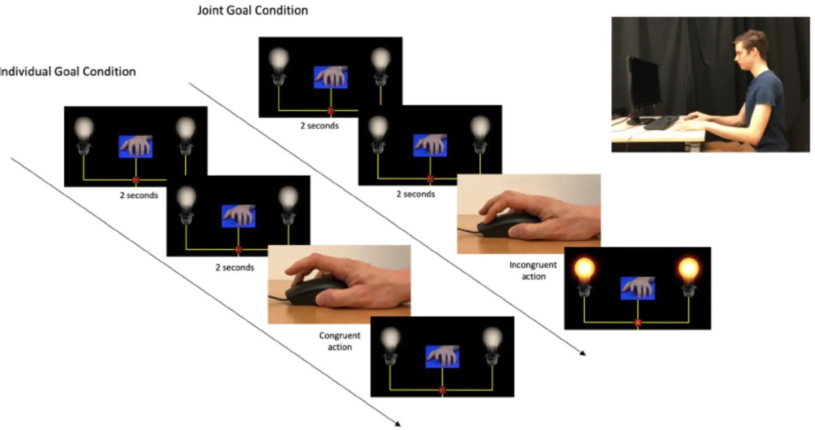 In the Individual Action Goal Condition, the two light bulbs were displayed on the two sides of the screen (See Fig. 3) during all trials, but remained switched off at all times.